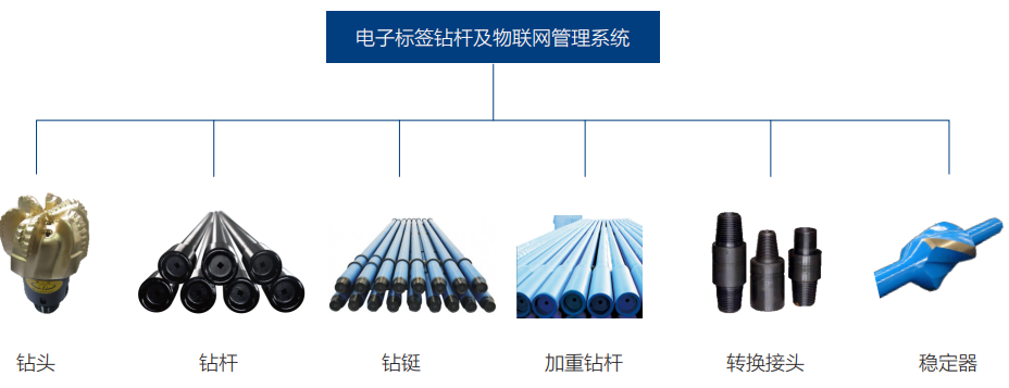 海隆電子標簽鉆具及物聯網管理系統——通過每根鉆具產品上安裝無線射頻識別(RFID)標簽,使其擁有獨一無二的“電子身份證”,結合智能讀寫設備和物聯網管理系統,高效、精確地實現鉆具生產、出入庫、調撥、使用、維修、檢測、報廢等全生命周期的管理。